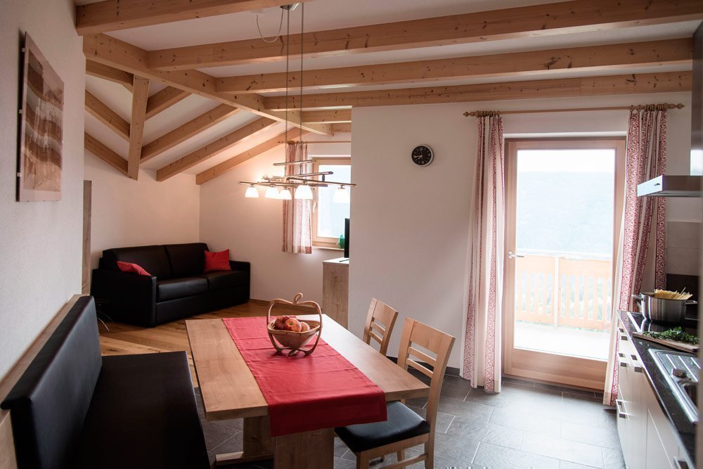 Apartamenty wakacyjne w Terento witają gości przytulnym i wygodnym wyposażeniem. Każdy z nich posiada dwie oddzielne sypialnie i może pomieścić 2-6 osób. Wyposażenie obejmuje w pełni wyposażoną kuchnię z salonem (płyty elektryczne, zmywarka, toster, ekspres do kawy, czajnik) z częścią wypoczynkową i telewizją satelitarną. Nowoczesne łazienki wyposażone są w prysznic, toaletę i umywalkę, a z balkonu roztacza się fantastyczny widok na góry doliny Puster.