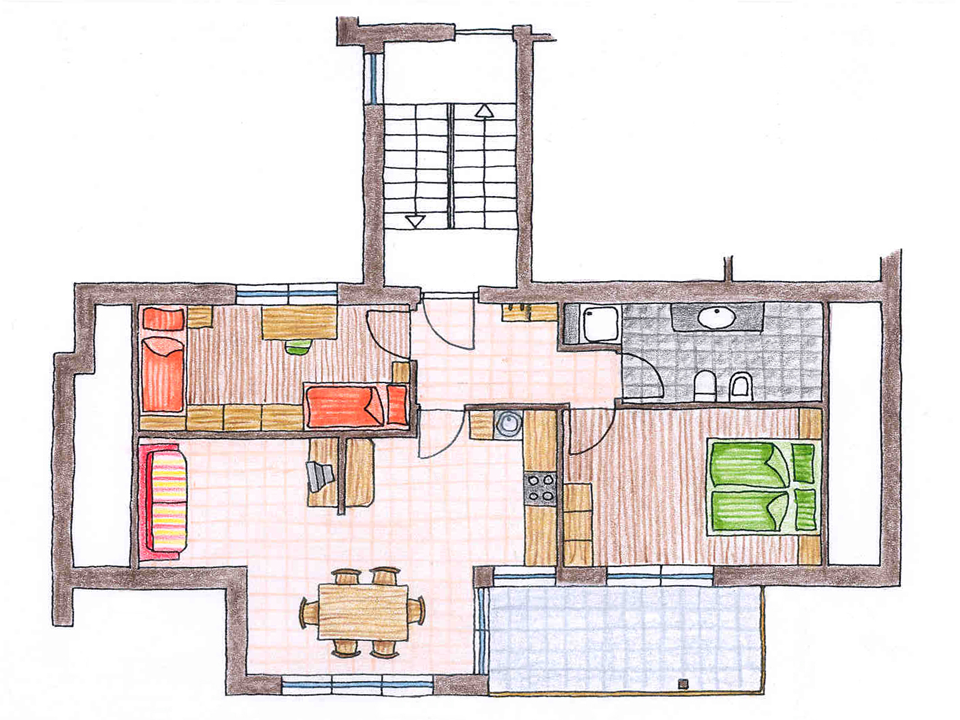 Mamy do dyspozycji dwa piękne, wypasione apartamenty. Każdy składa się z dwóch sypialni, jednej łazienki z prysznicem, bidetem i WC, przestronnego salonu z w pełni wyposażonym aneksem kuchennym (kuchenka elektryczna, lodówka, zamrażarka, zmywarka, ekspres do kawy, naczynia), a także telefonu, telewizji satelitarnej i dostępu do Internetu. Wyposażenie można dostosować do swoich potrzeb. Na przykład dwa łóżka w jednej z sypialni tworzą albo łóżka pojedyncze, albo łóżko podwójne, gdy są zsunięte. Apartamenty są wyposażone w duży balkon, z którego roztaczają się wspaniałe widoki na pasma górskie wokół Fundres.